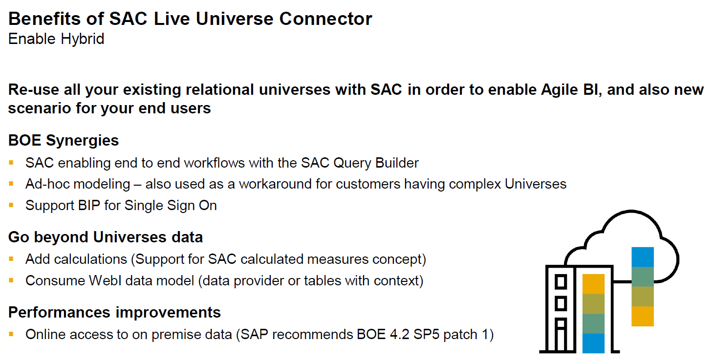 Ook huidige BO klanten met veel Universes en Webi’s worden op hun wenken bediend. Beide kunnen binnenkort als bron dienen voor SAC.