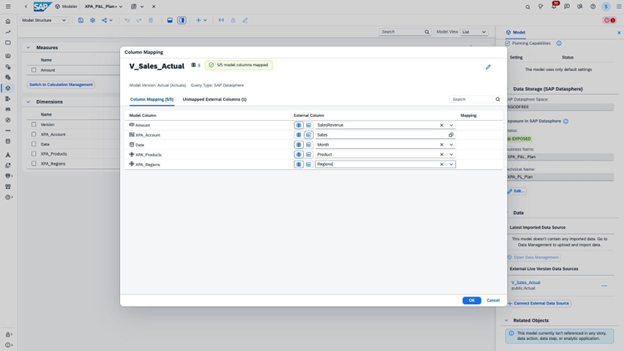 In the model details you can find a new entry called ‘External Live Version Data Sources’. From here you can follow the steps to make the live data available to be used in story calculations as well as data actions. If needed you can copy the live version data into a planning version via copy/paste in the table, data actions and version management.